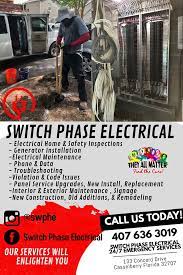 “DON’T TRY TO TACKLE ELECTRICAL ISSUES YOURSELF. Get immediate help from a master electrician in Casselberry, FL. The electrical system at your home or commercial facility can be dangerous to work on if you don’t know what you’re doing. When something malfunctions, don’t poke around in your breaker box to try and find the problem yourself. Instead, depend on a qualified electrician from Switch Phase Electrical to diagnose and repair the issue safely and efficiently. Contact us today to schedule electrical services at your home or place of business in the Casselberry, FL area.”